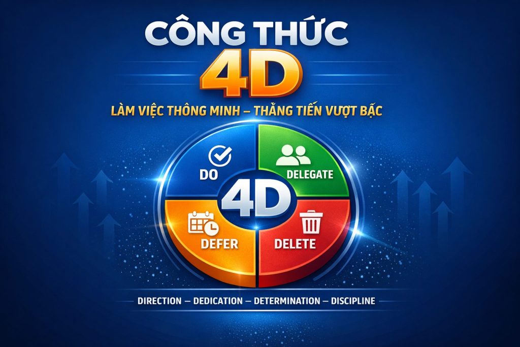 Bạn luôn trong trạng thái bận rộn, lịch làm việc kín mít nhưng kết quả sự nghiệp vẫn không bứt phá? Vấn đề không nằm ở việc bạn làm chưa đủ nhiều, mà ở chỗ bạn chưa tối ưu cách mình làm việc. Công thức 4D chính là khung quản trị hiệu suất giúp bạn thoát khỏi “bận rộn ảo” và tập trung vào những hoạt động tạo ra giá trị thực.